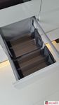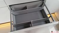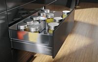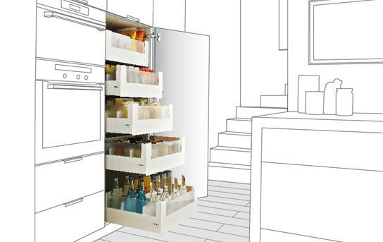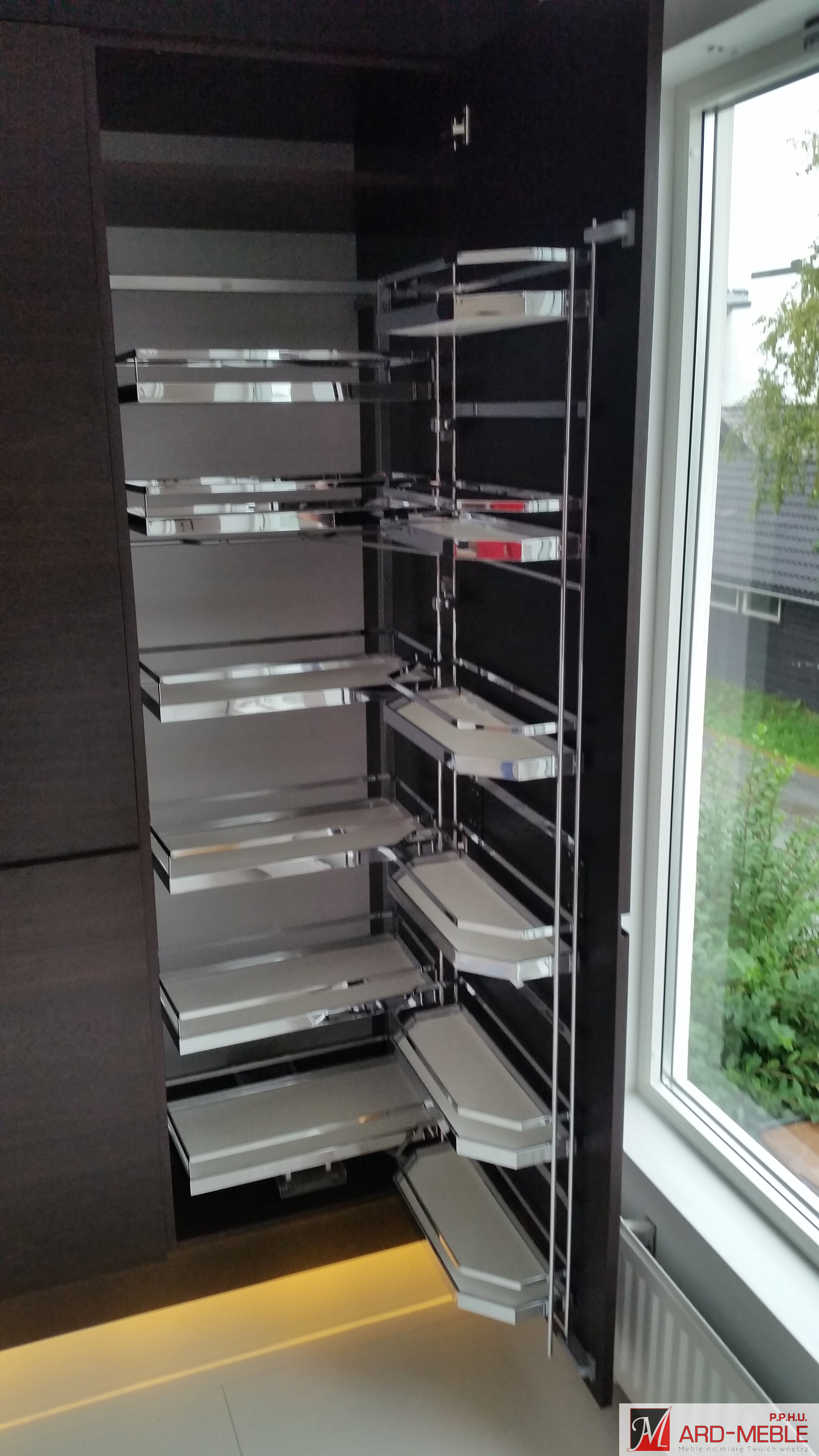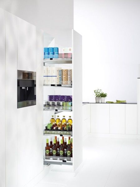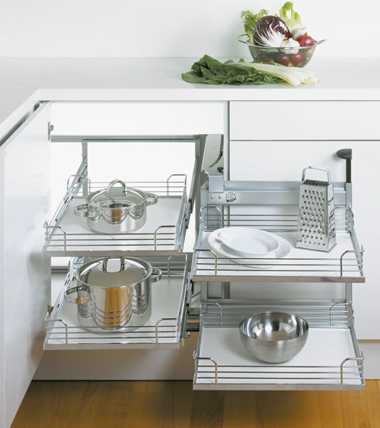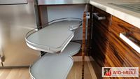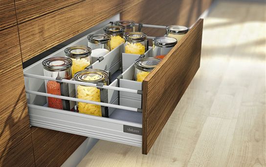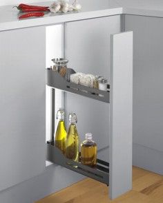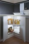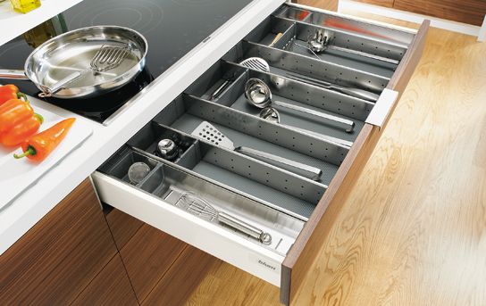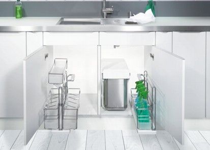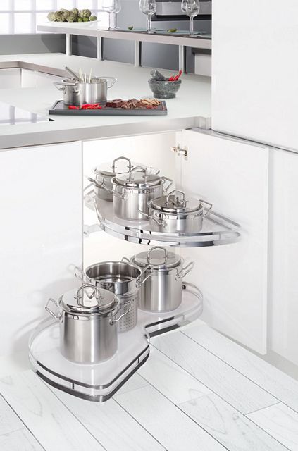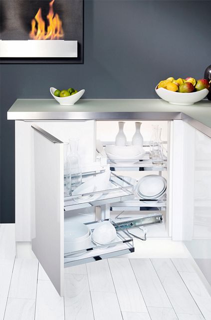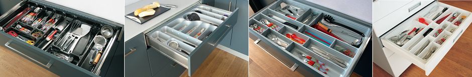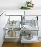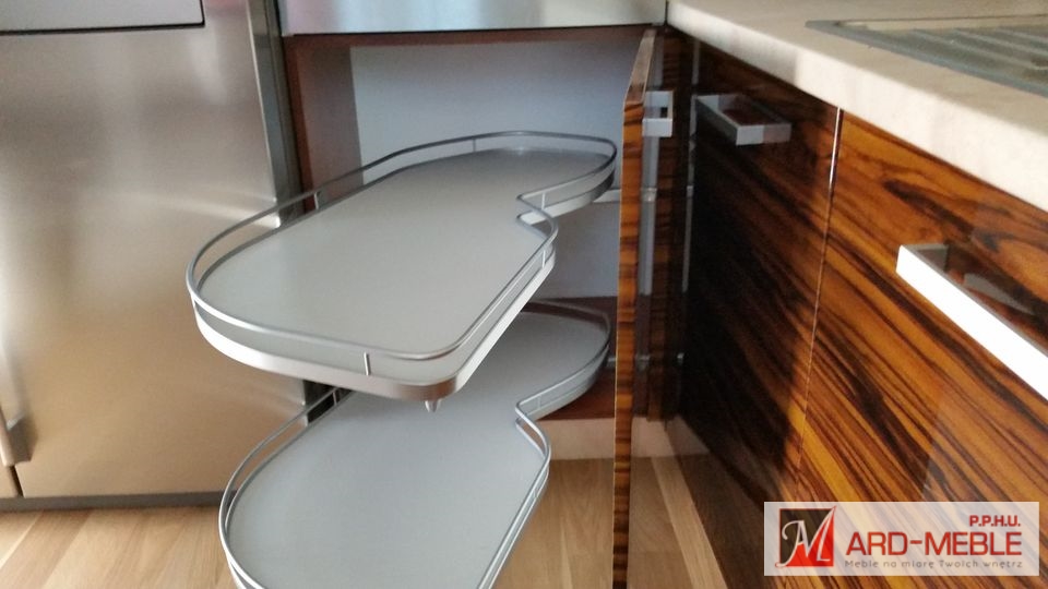 Polecamy zastosowanie różnego rodzaju akcesorii meblowych do wyposażenia szafek. Projektując kuchnię należy wykorzystywać każdą przestrzeń, takie sensowne wykorzystanie powierzchni szafek zapewniają nam rozwiązani dla różnych szerokości szafek, które znacząco wzbogacają kuchnię i pozwalają na przechowywanie rzeczy o przeróżnych kształtach.
