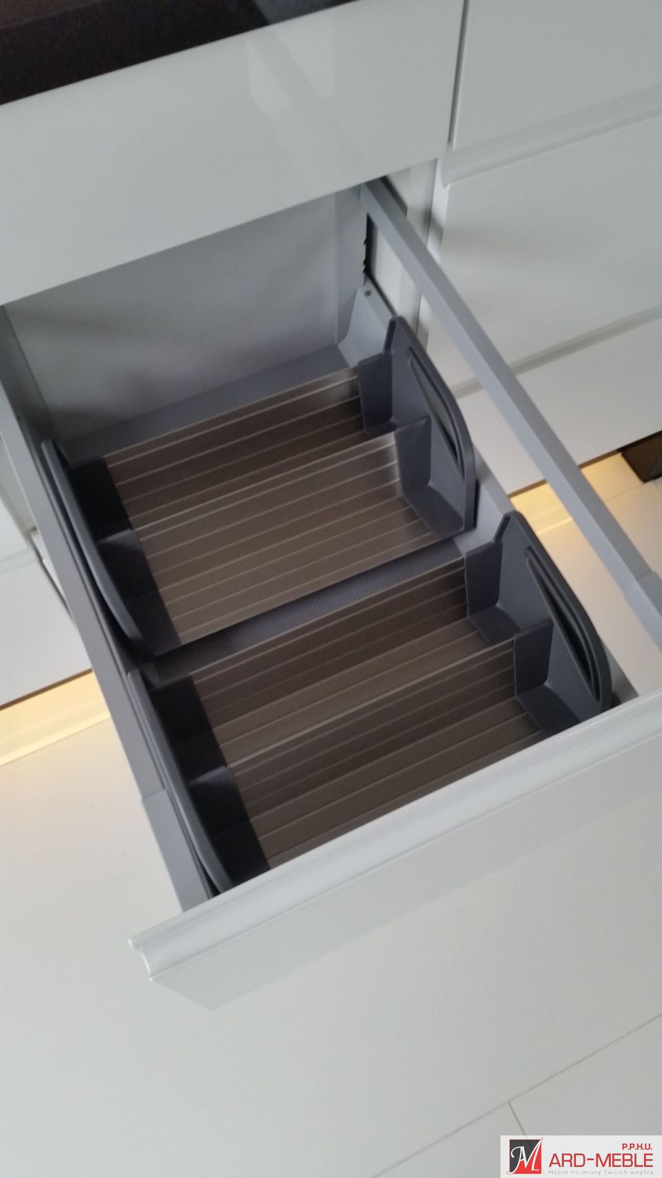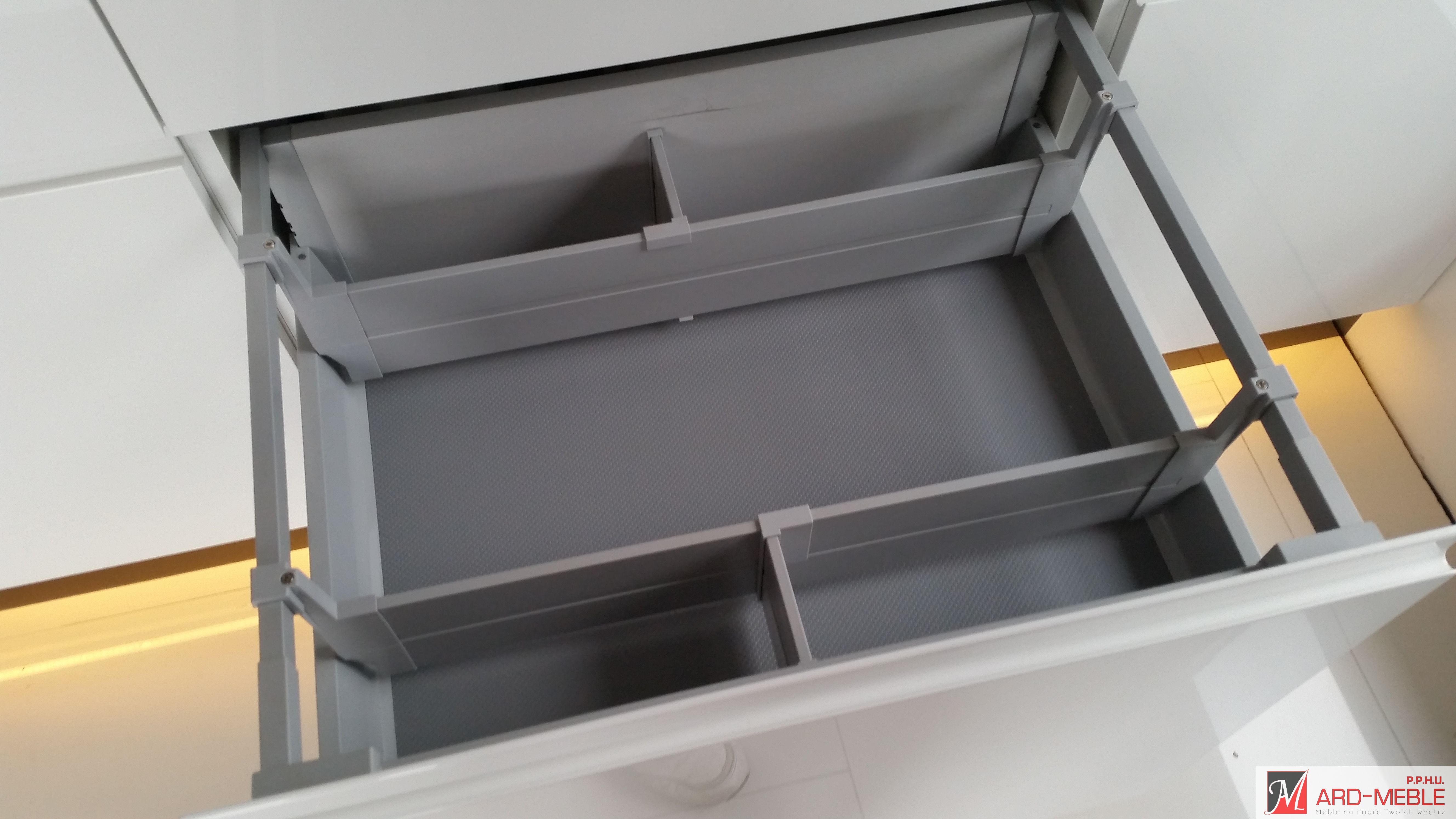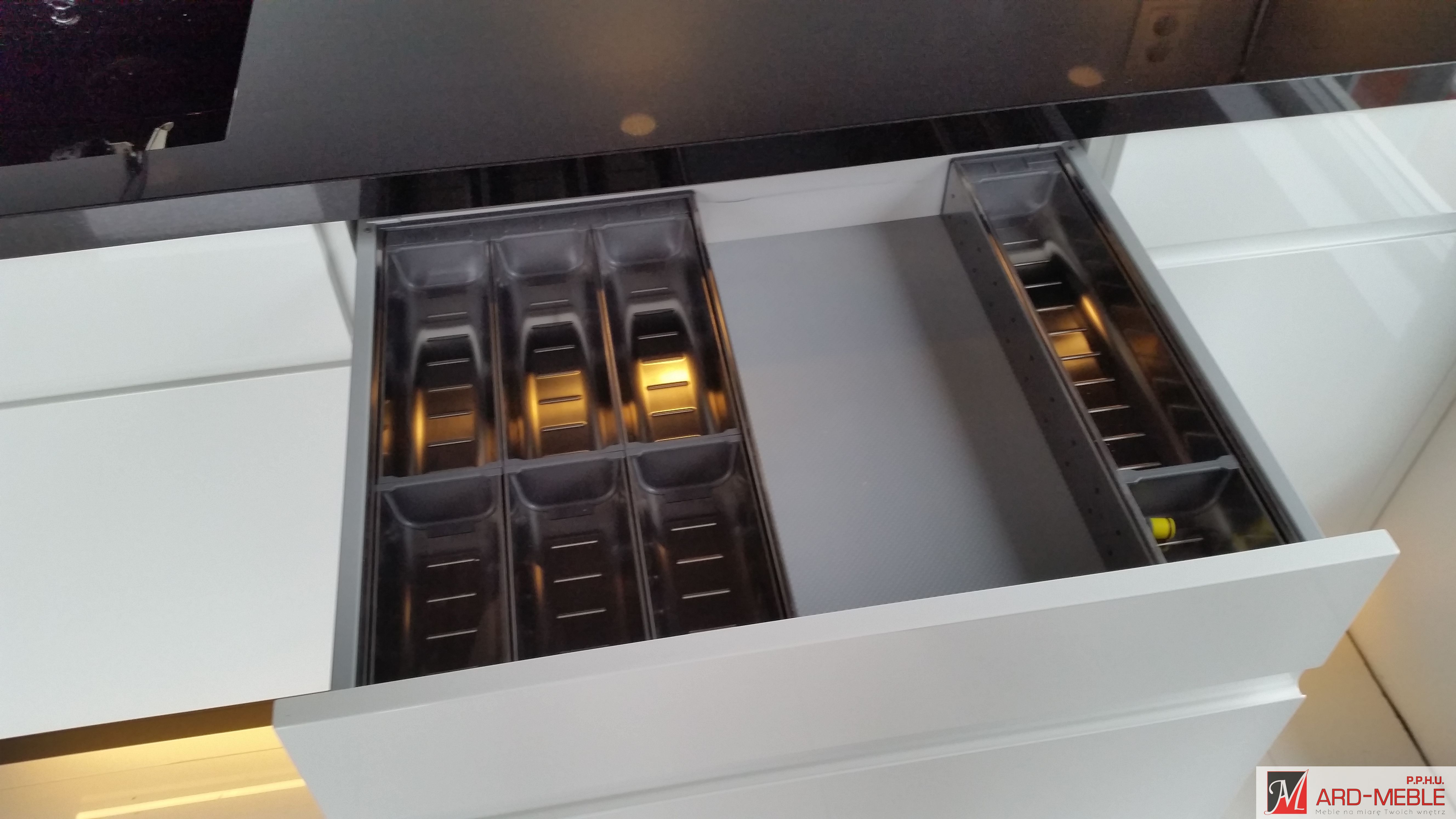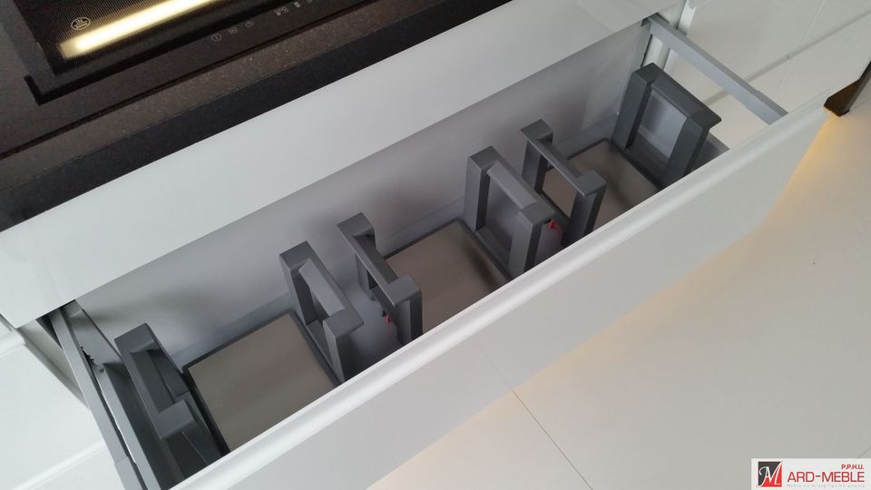 Przy wyposażaniu mebli w akcesoria bazujemy na niezawodnych rozwiązaniach m.in. takich firm jak BLUM, PEKA, HETTICH, które pozwalają na wprowadzenie ładu i porządku w szafkach, są łatwe w użytkowaniu, a co najważniejsze posiadają gwarancję producenta , która daje pewność, że są to systemy sprawdzone i o najwyższej jakości.